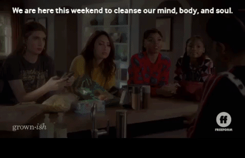 Joining the others back in the kitchen, Sky’s just in time to hear Zoey proclaim self-care weekend’s official start. And y’all already know how this group is about rules, so here are the ones for the weekend: no phones, no social media, no alcohol, no illegal substances, and no junk food. Ana refuses to go through her break-up without carbs, note the bag of chips, and who can legit blame her? But, as Nomi points out, she’s not actually going through a breakup because she and Aaron were never actually together together. (Way to rub salt in that open wound.)